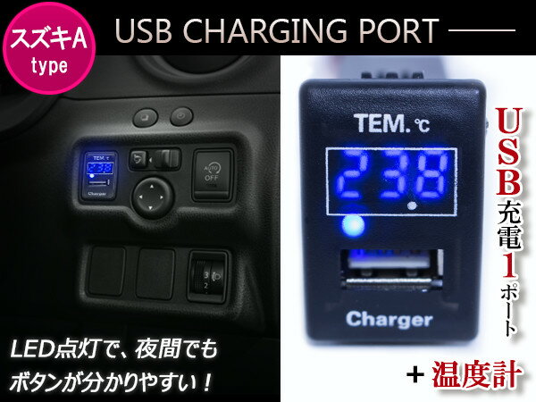 【デザインE】【スズキA】DC12V専用 5V/2.1A 純正スイッチホールに付け替えるだけ!
