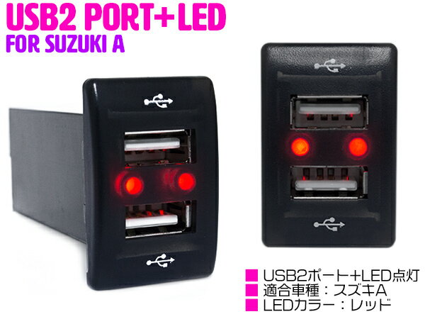 2.1AのLED付、2口USBポートです。純正の空いているスイッチホールに取り付け、携帯やダブレット端末を車内で充電できます。LEDが点灯することで、電装品の動作状態がひと目でわかり、また、夜間でもボタンが見つけやすいです。 ★★★配線について★★★・赤…常時電源(+)・黒…アース(-)★★★★★★★★★★★★ ■製品仕様 対応形状:スズキA LED点灯カラー:レッド 【他カラーはこちら】 【スズ...